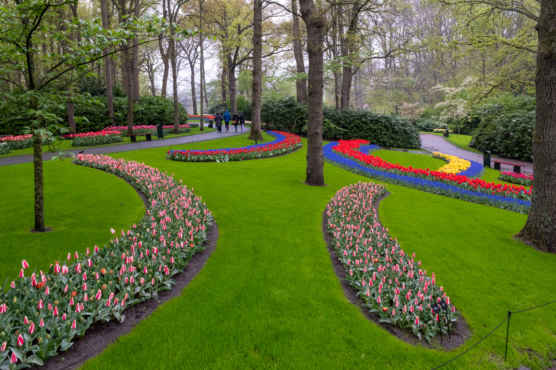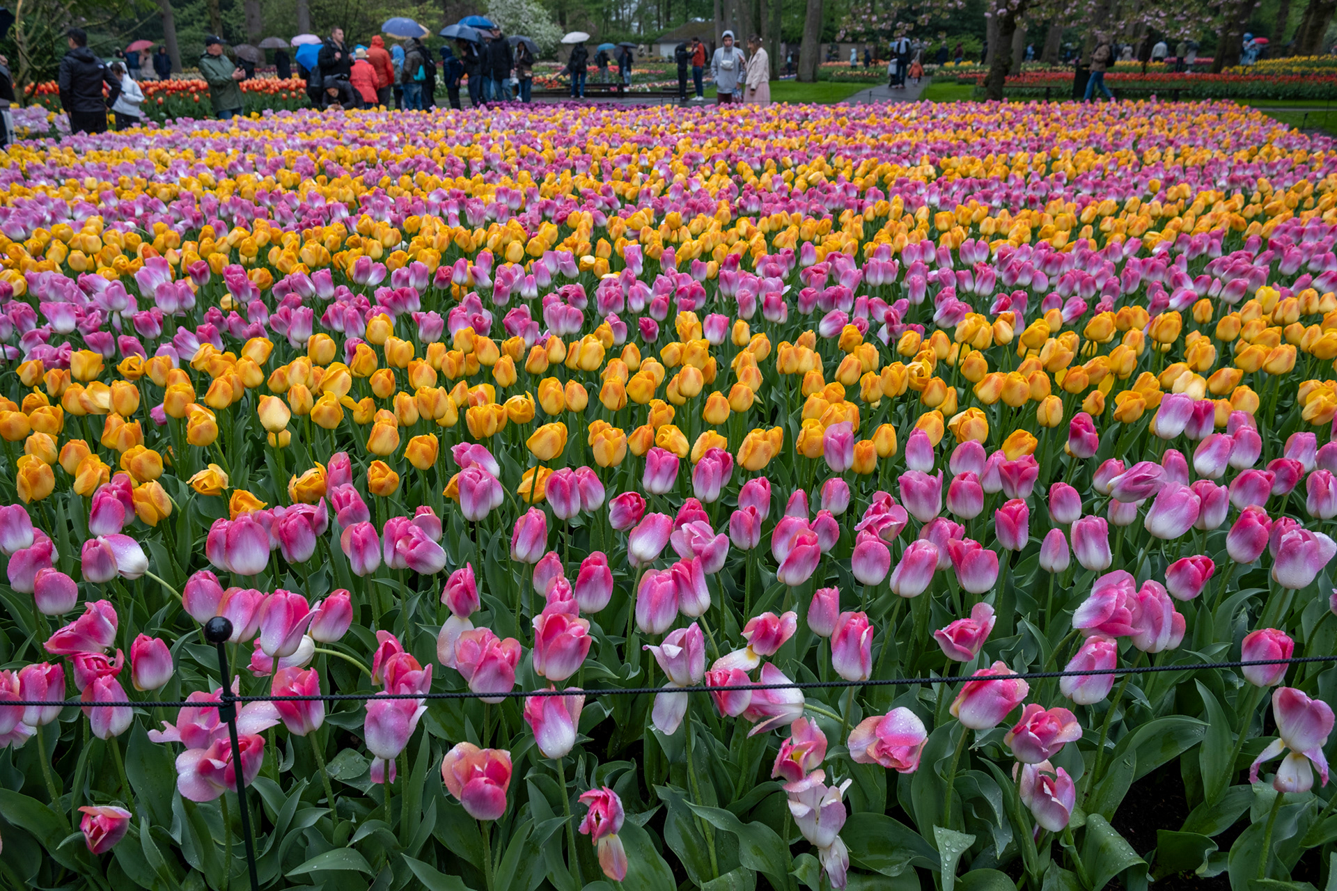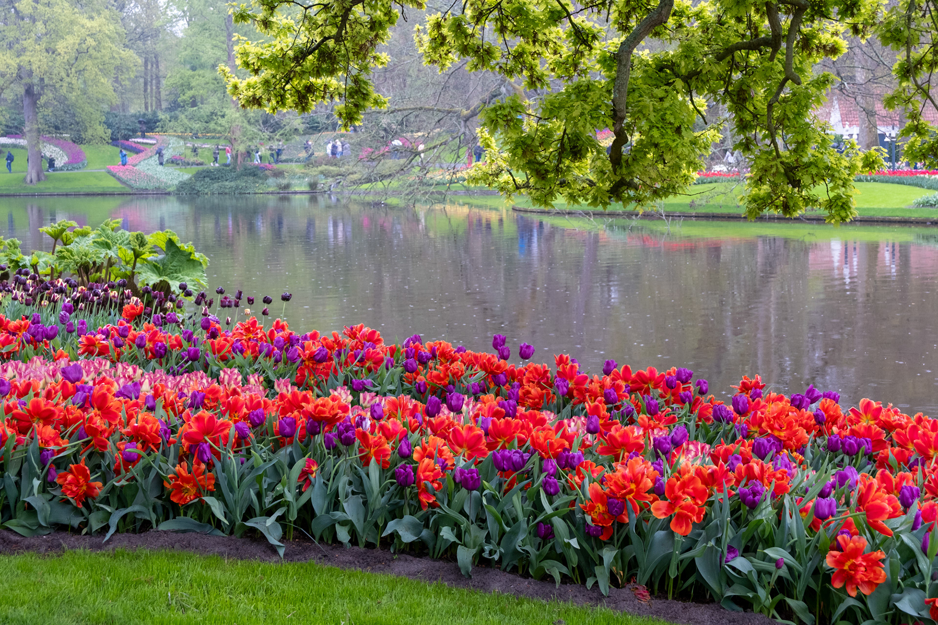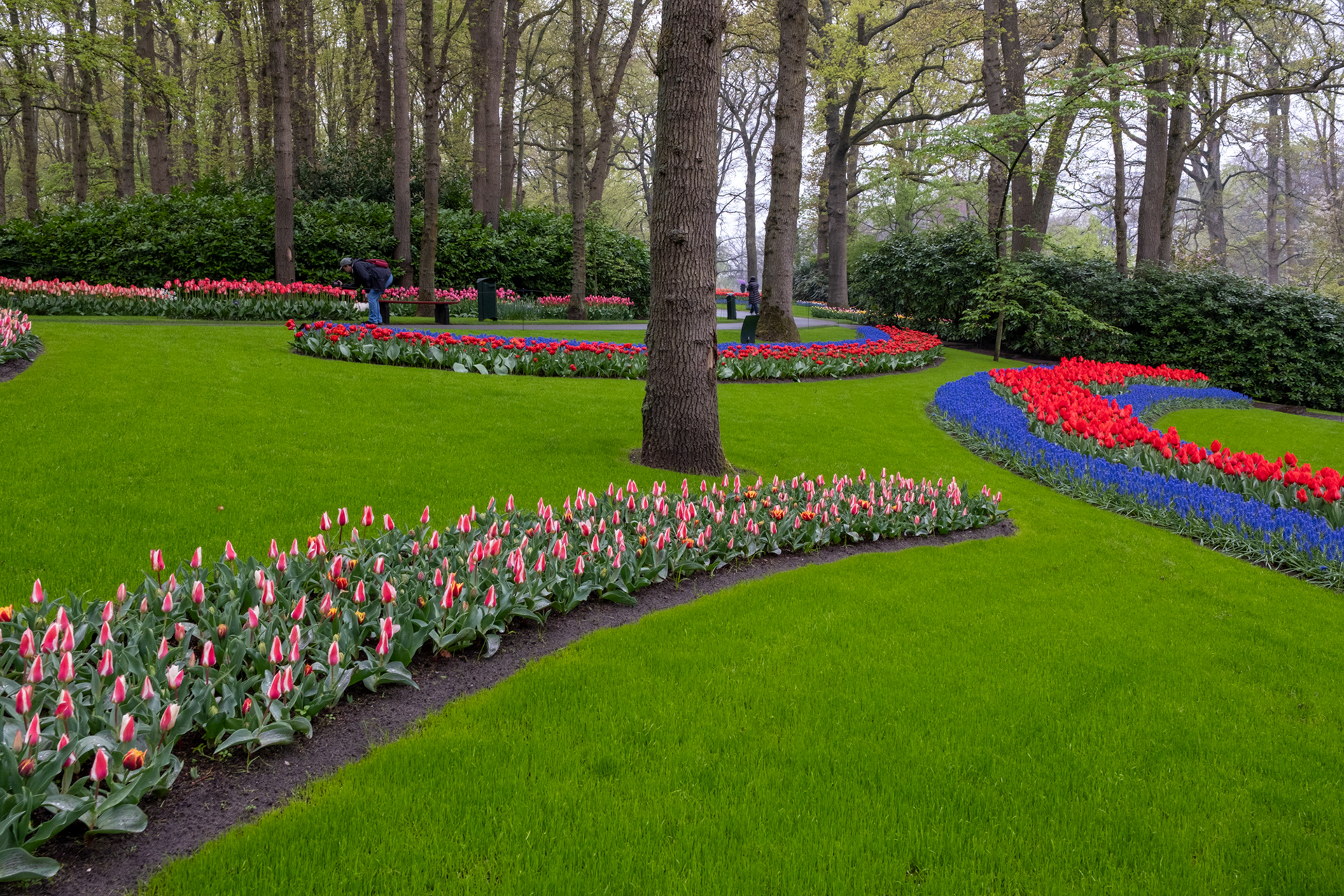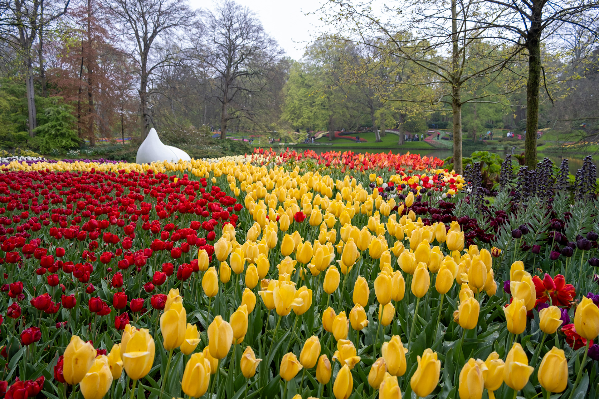 Our second day was rainy with very small crowds as we went when the park opened. Many of the tulips were closed. What a difference! Click on any image to see larger and begin slideshow.