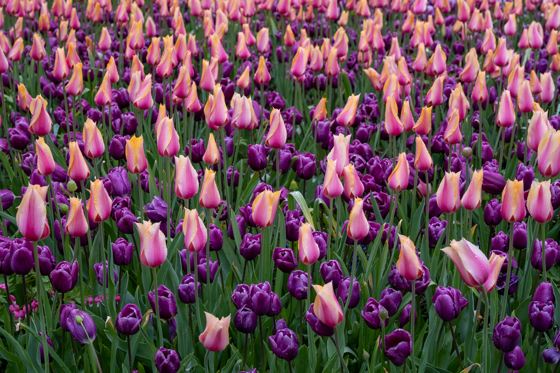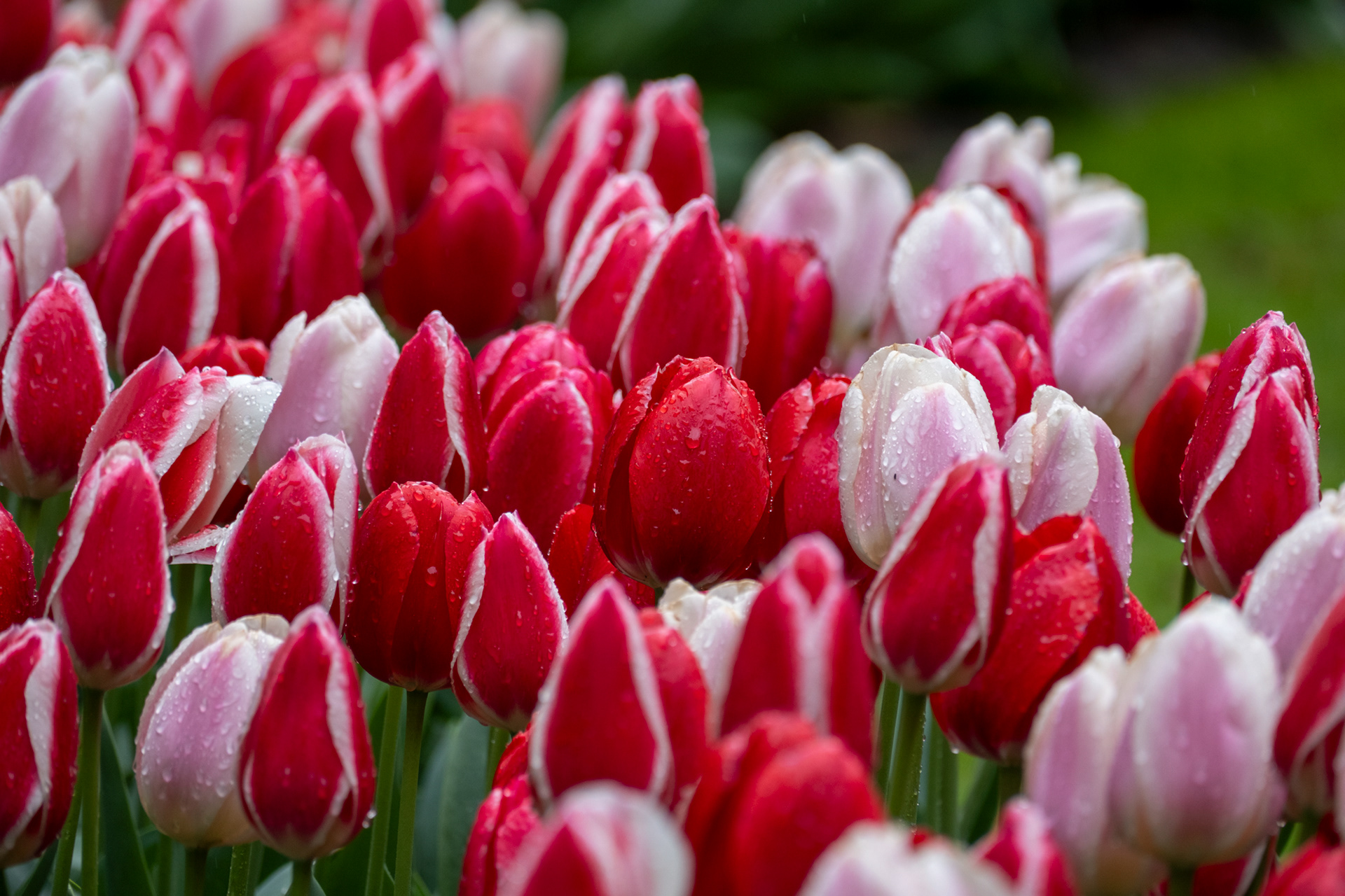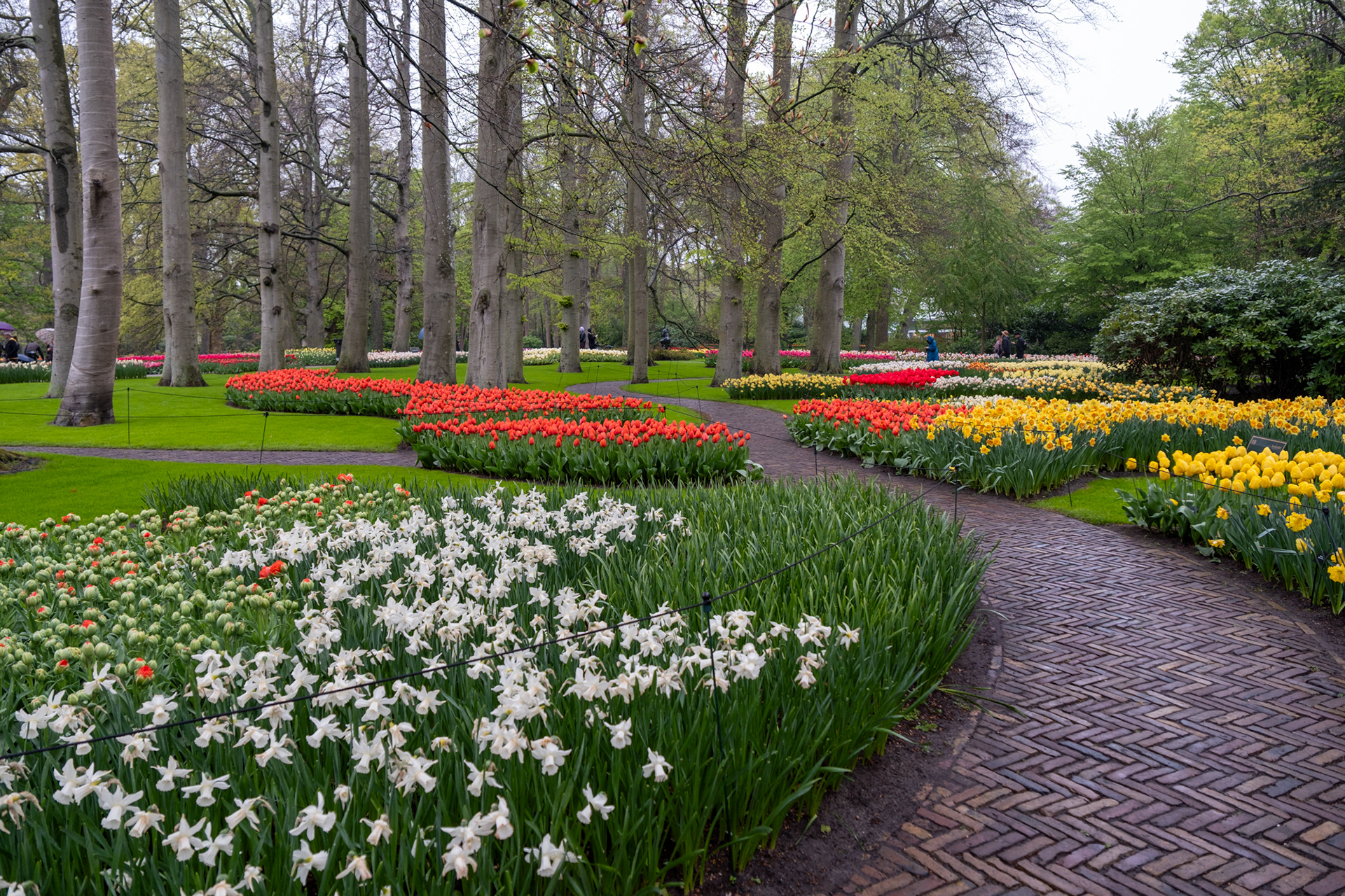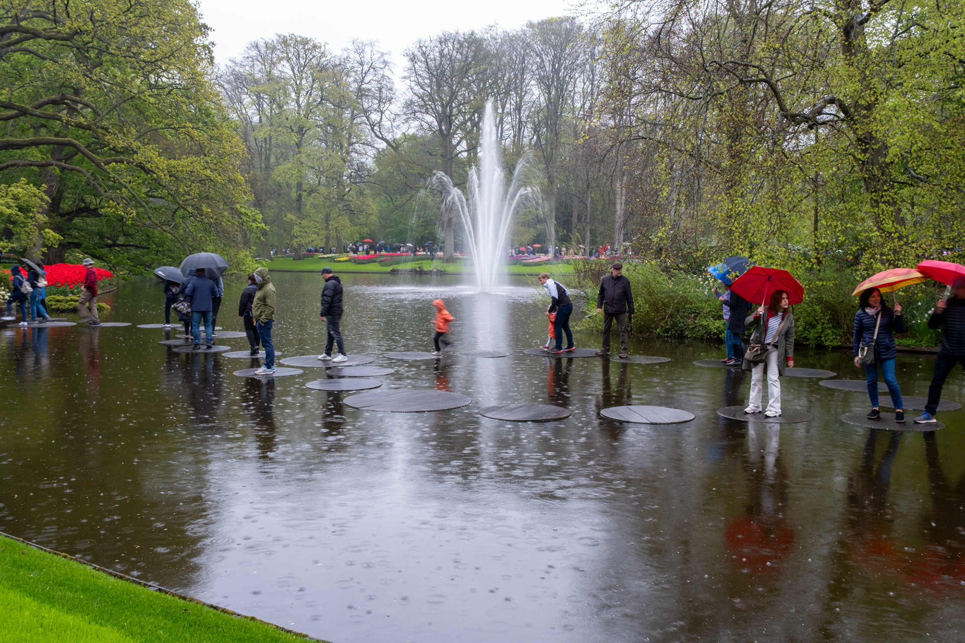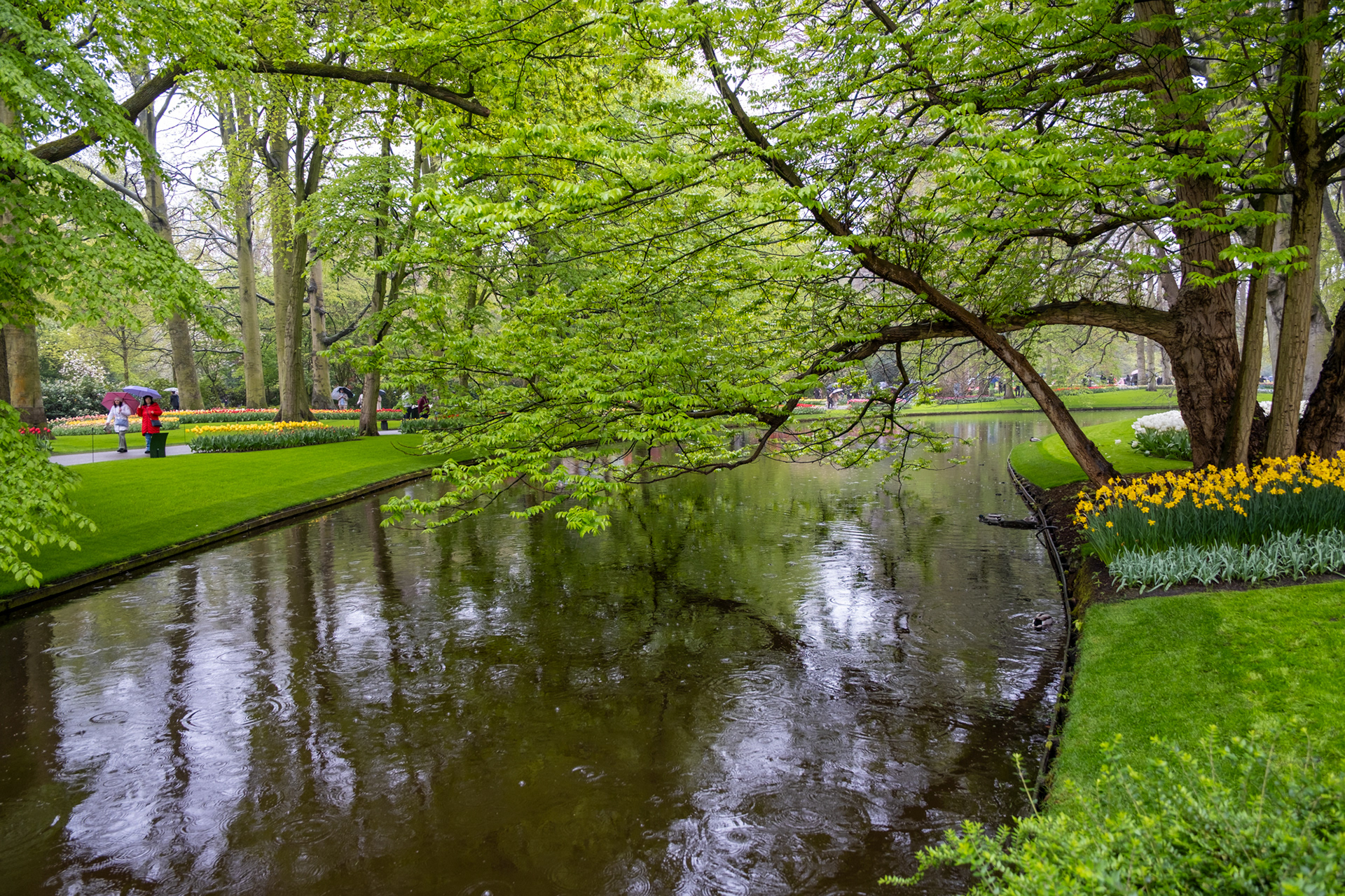 Our second day was rainy with very small crowds as we went when the park opened. Many of the tulips were closed. What a difference! Click on any image to see larger and begin slideshow.