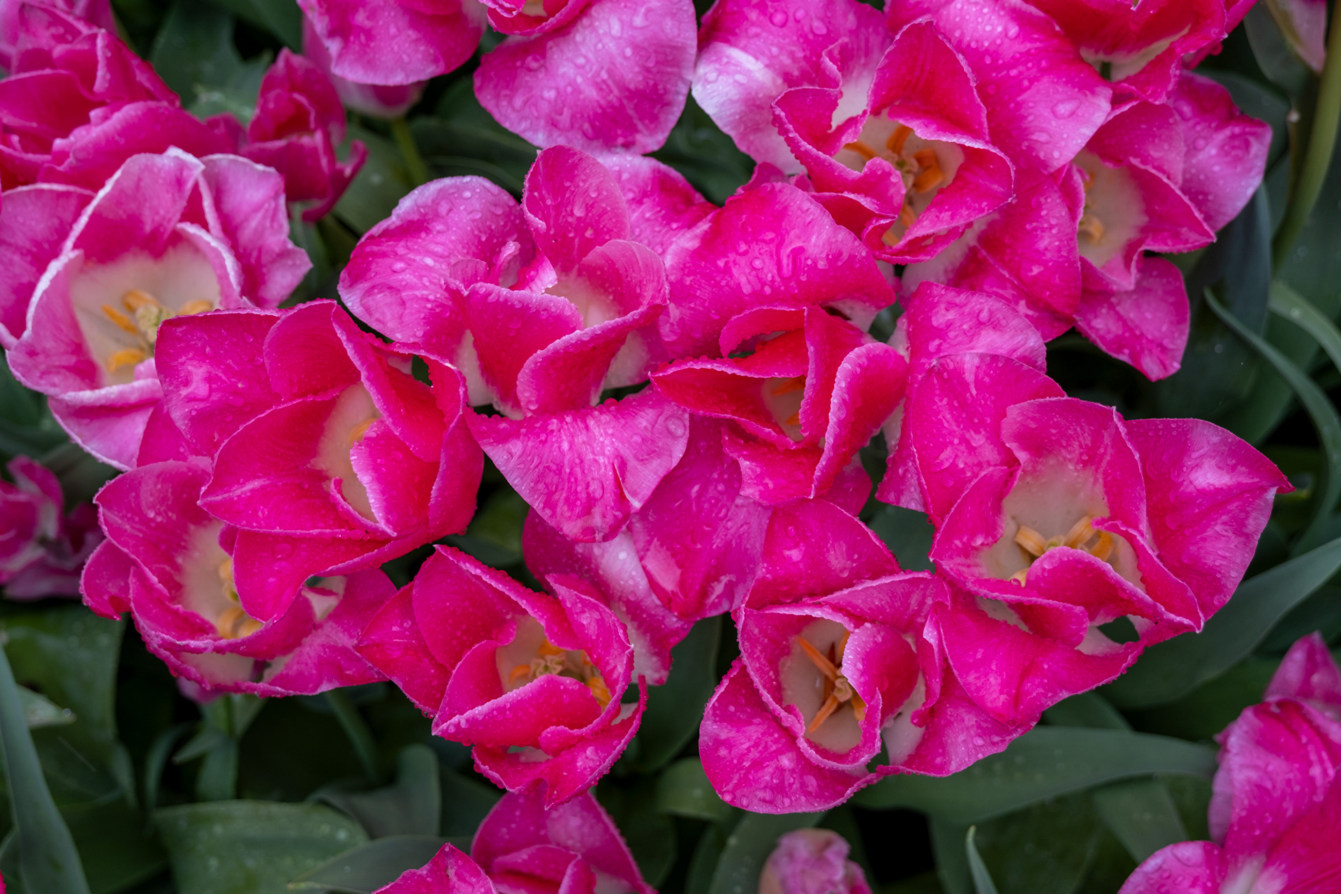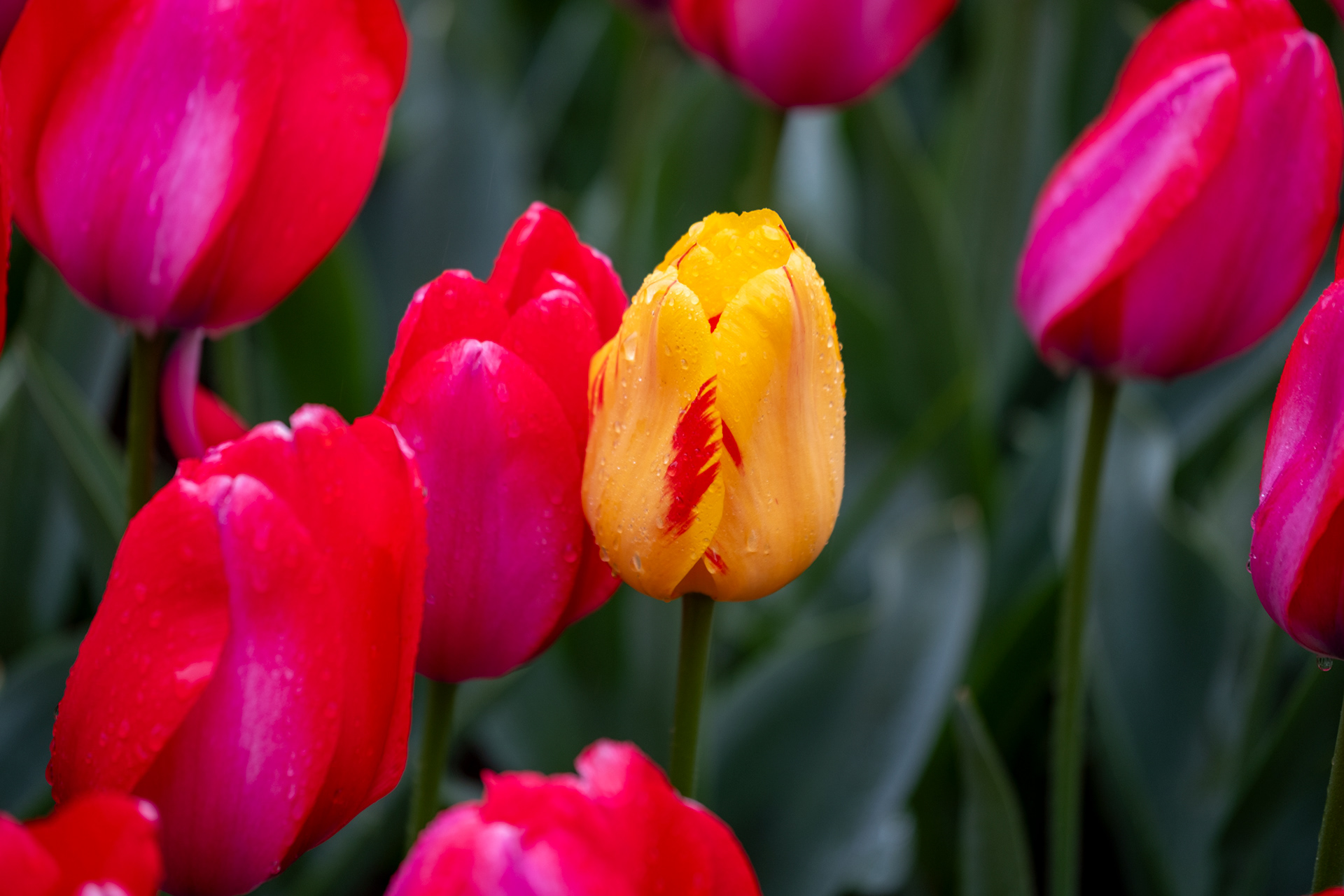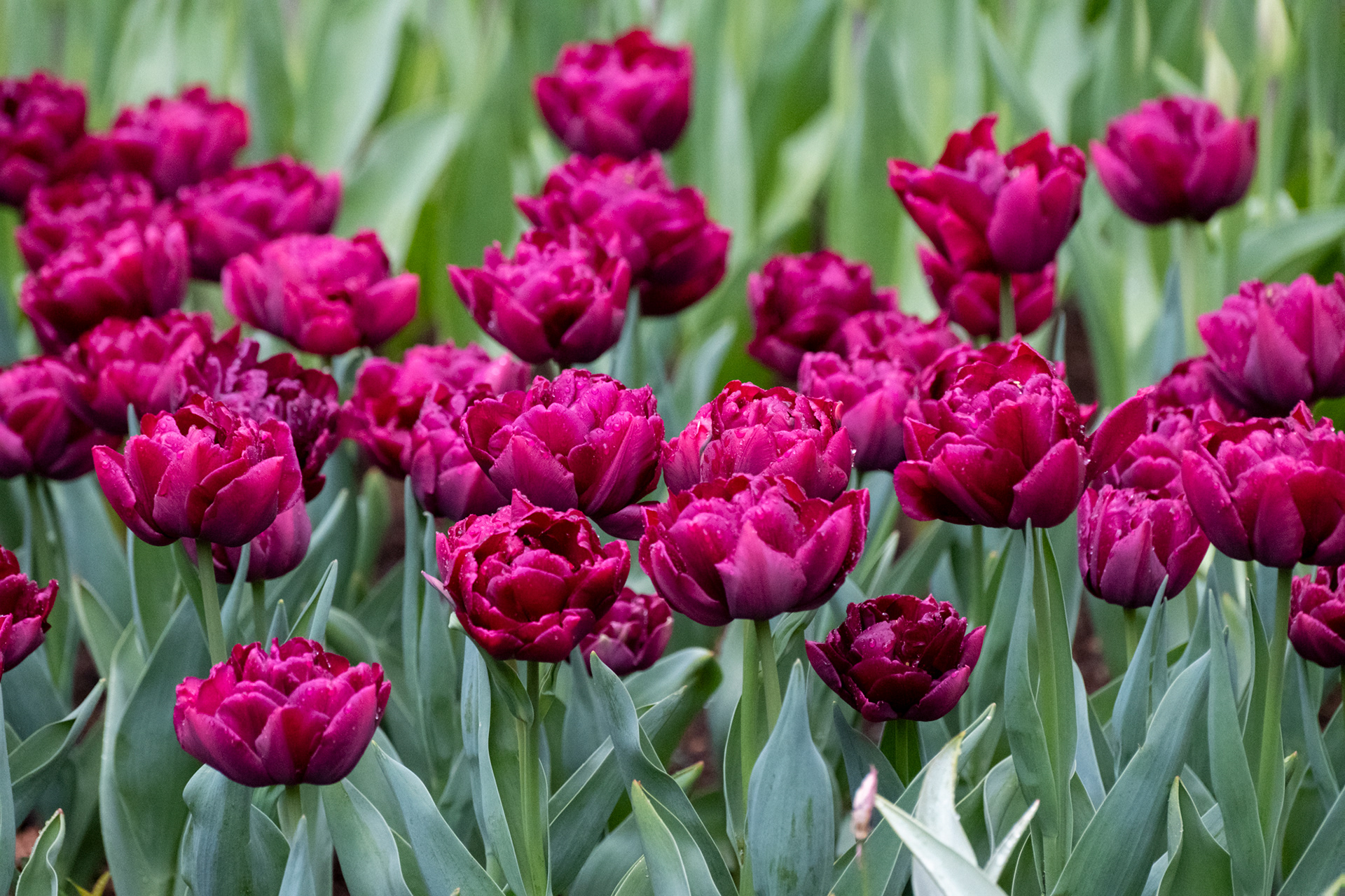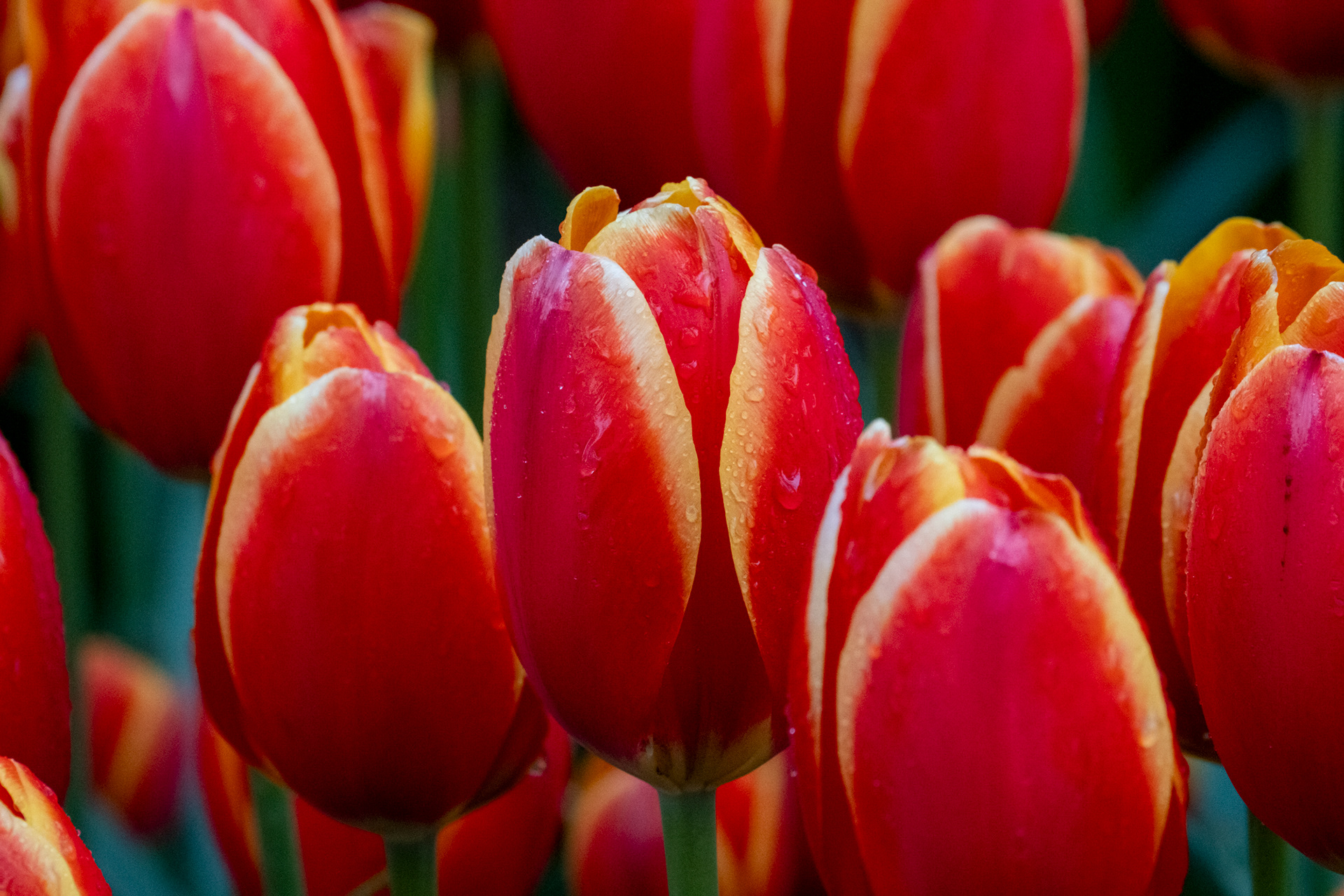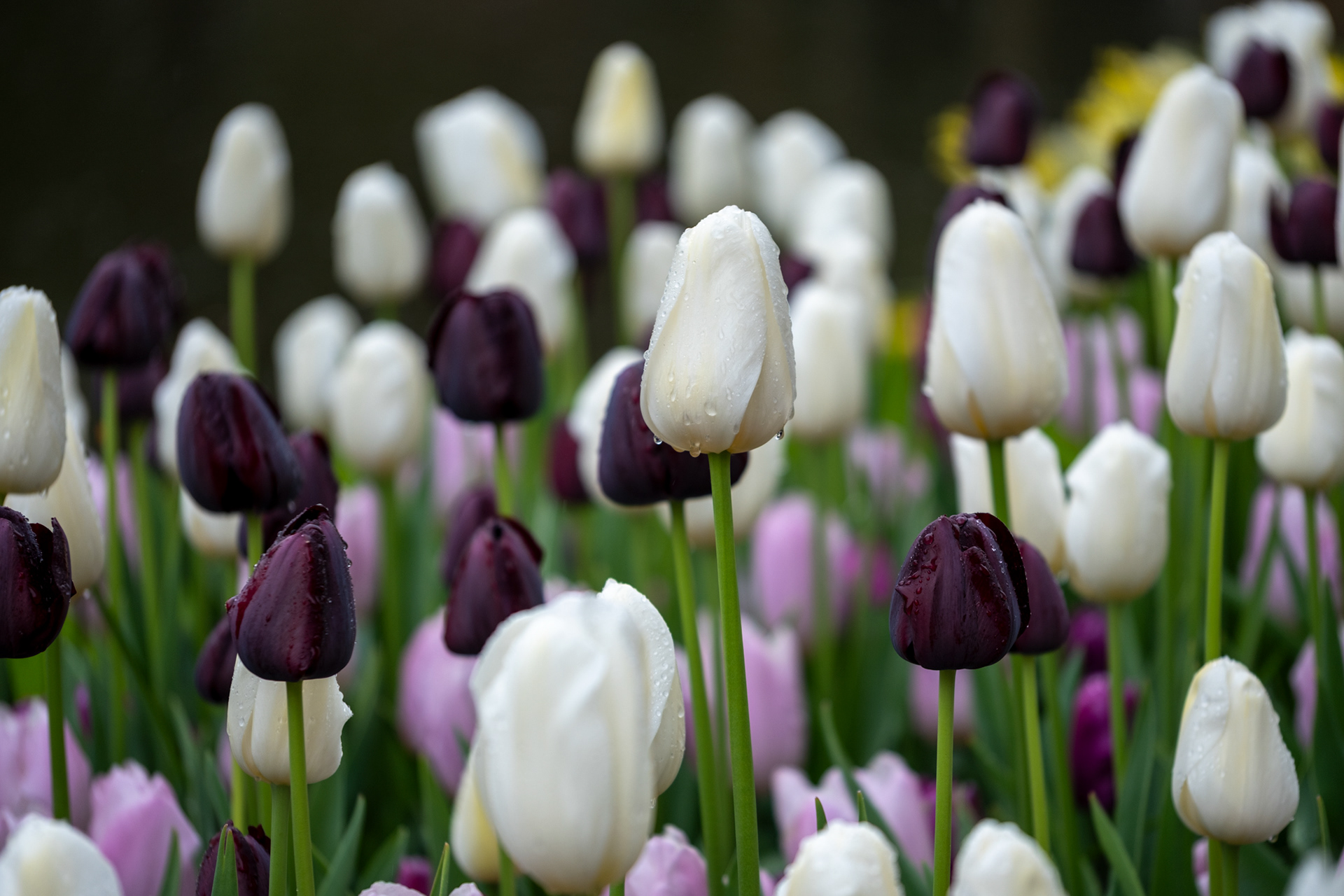 Our second day was rainy with very small crowds as we went when the park opened. Many of the tulips were closed. What a difference! Click on any image to see larger and begin slideshow.
