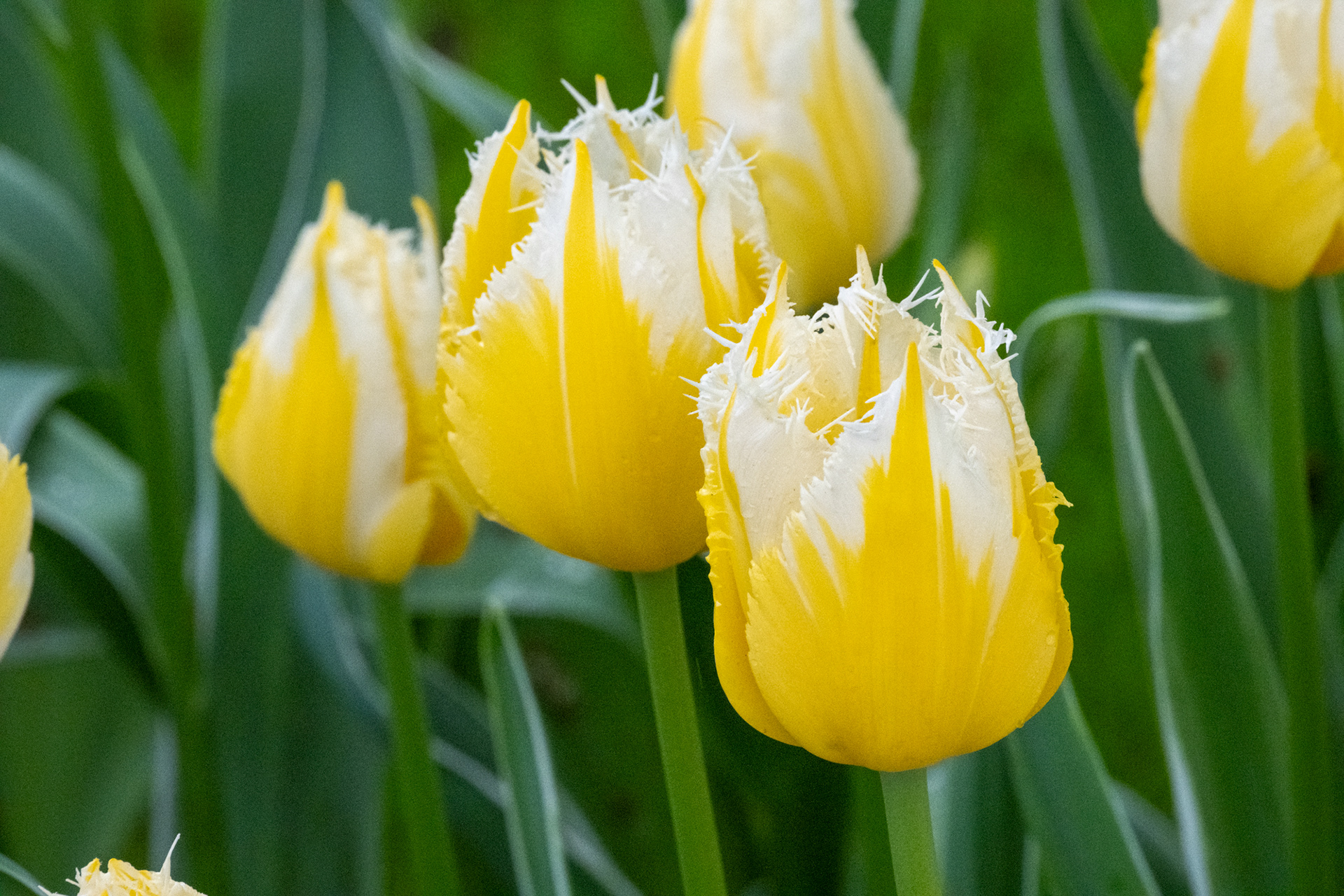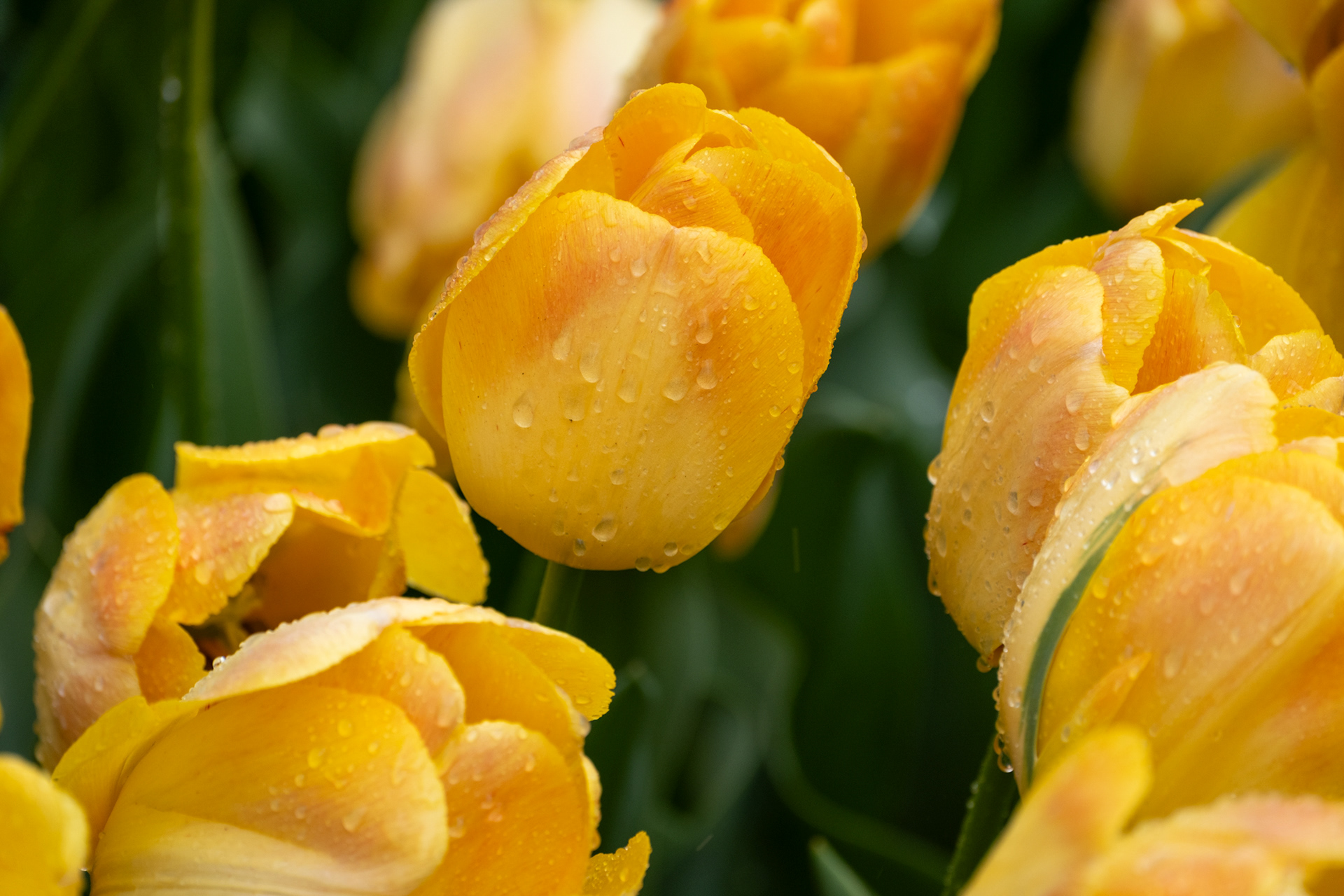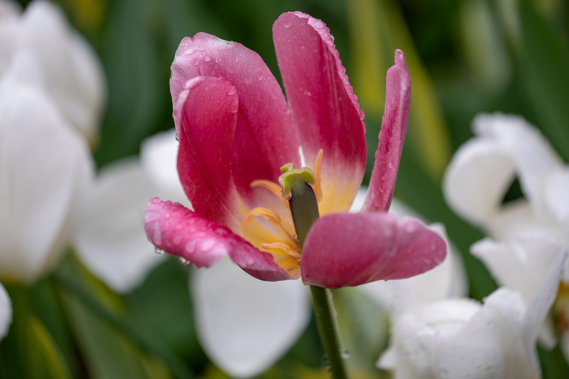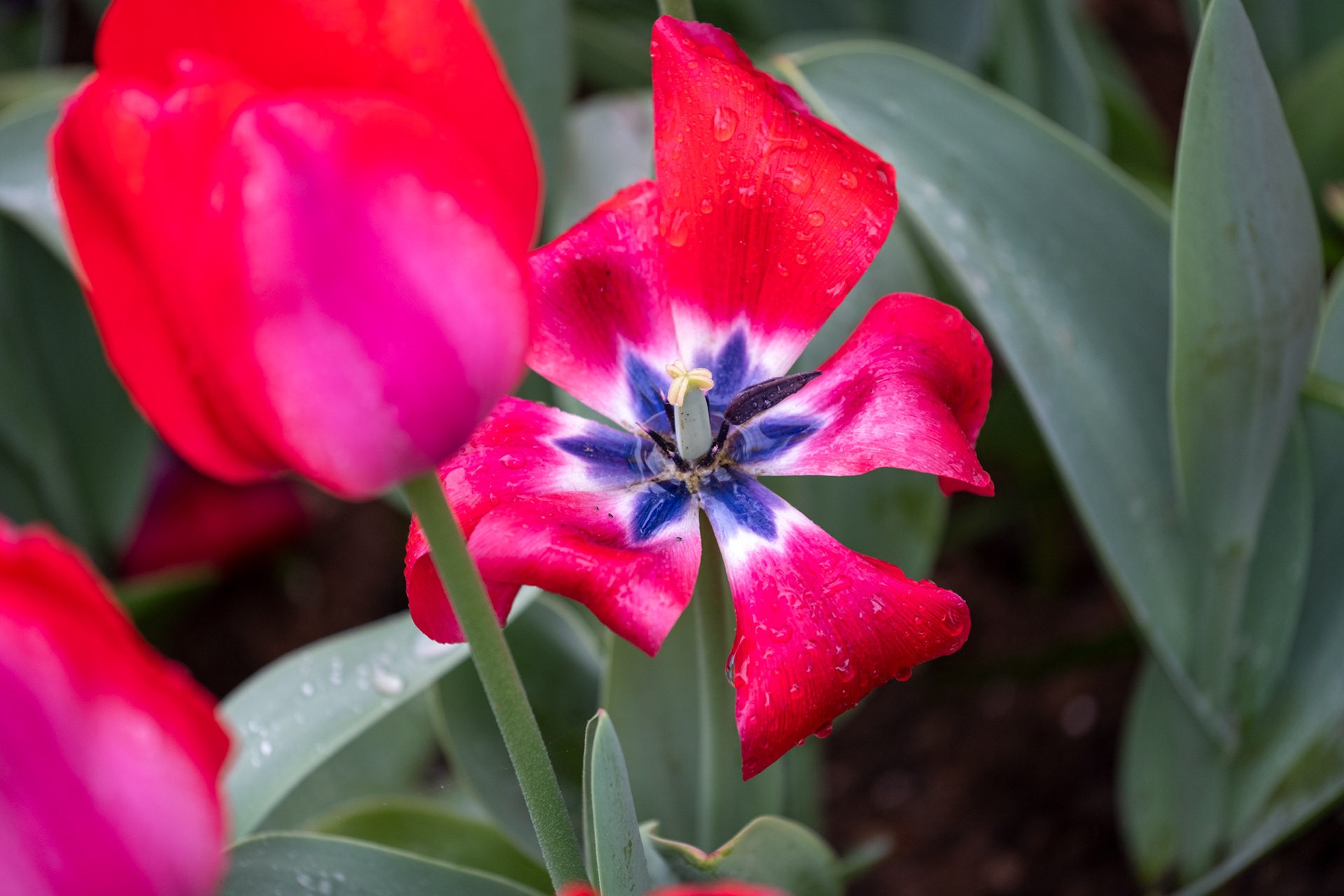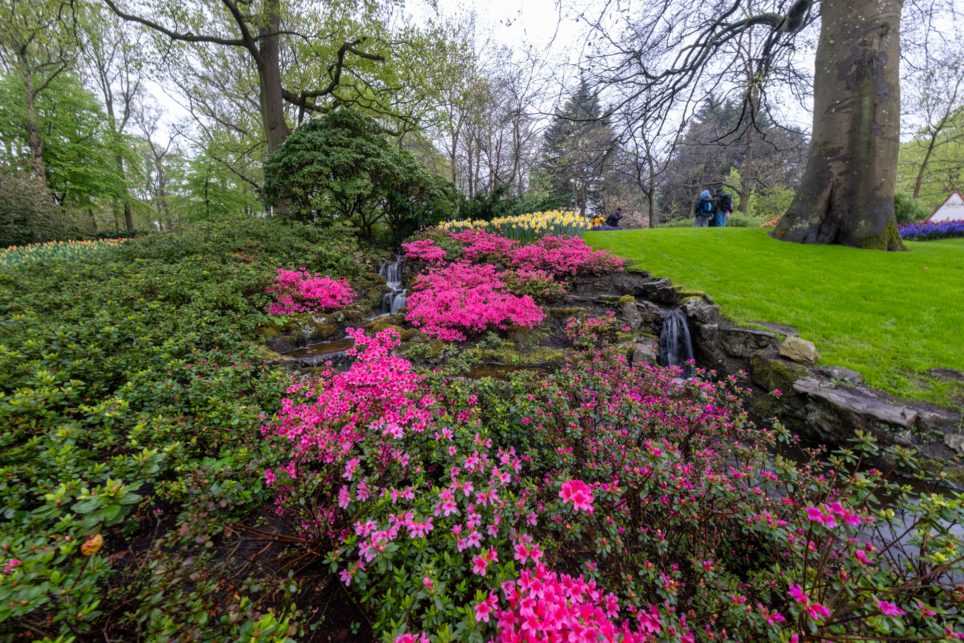 Our second day was rainy with very small crowds as we went when the park opened. Many of the tulips were closed. What a difference! Click on any image to see larger and begin slideshow.